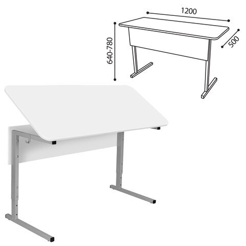 Стол-парта 2-местный, регулируемый угол, СУТ.55-01, 1200х500х640-780 мм, рост 4-6, серый каркас, ЛДСП белая