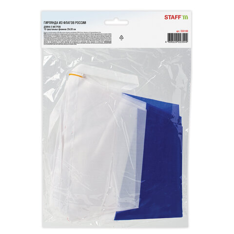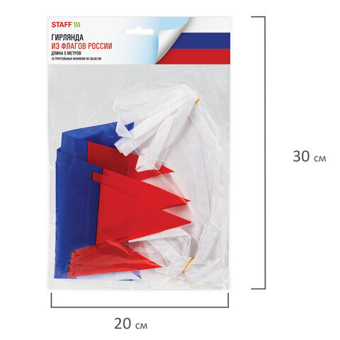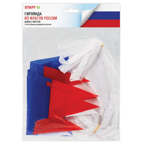 Гирлянда из флагов России, длина 5 м, 10 треугольных флажков 20х30 см, BRAUBERG/STAFF, 550186, RU27