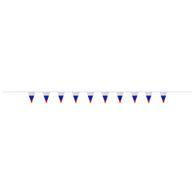 Флаг - официальный символ Российского государства. Гирлянда из флагов России применяется для оформления помещений и зданий, спортивных мероприятий, демонстраций и парадов.