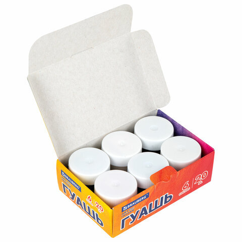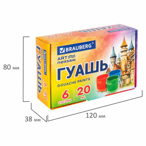 Гуашь BRAUBERG "ART ПЕЙЗАЖ", 6 цветов по 20 мл, 192555