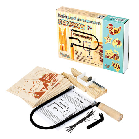 | Комплектация | выпиловочный столик, заготовки, инструкция, ключ для барашковой гайки, набор пилок, струбцина |