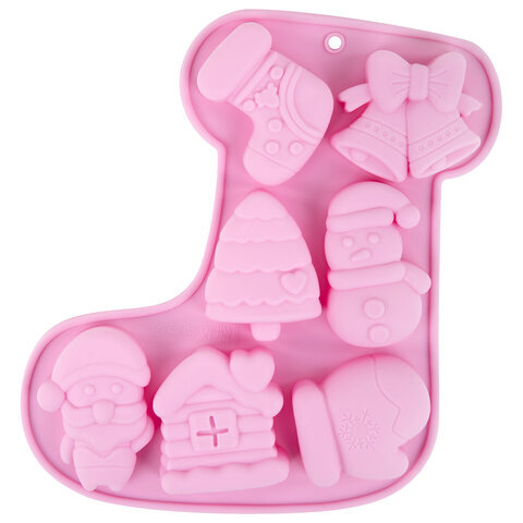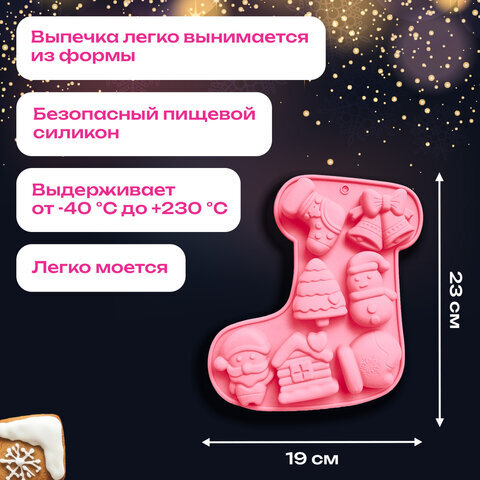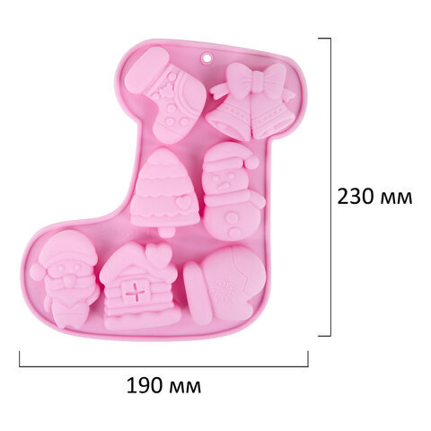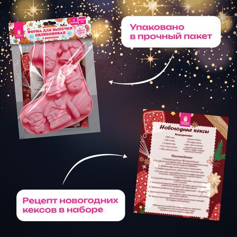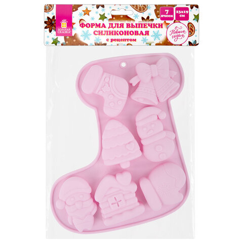 Форма для выпечки новогодняя 23х19 см, "Сапожок", силикон, 7 ячеек, рецепт, ЗОЛОТАЯ СКАЗКА, 592470