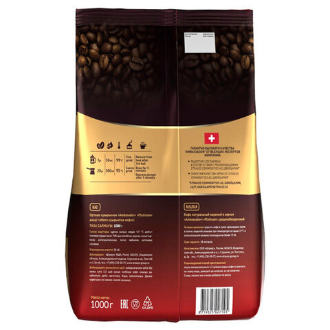 Кофе в зернах AMBASSADOR "Platinum" 1 кг, арабика 100%