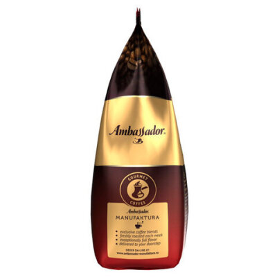 Для вас, ценители кофе, мы создали зерновой кофе премиум качества AMBASSADOR "Platinum". Его характеризуют полный, сбалансированный вкус с карамельно-фруктовыми оттенками и яркий, изысканный аромат.