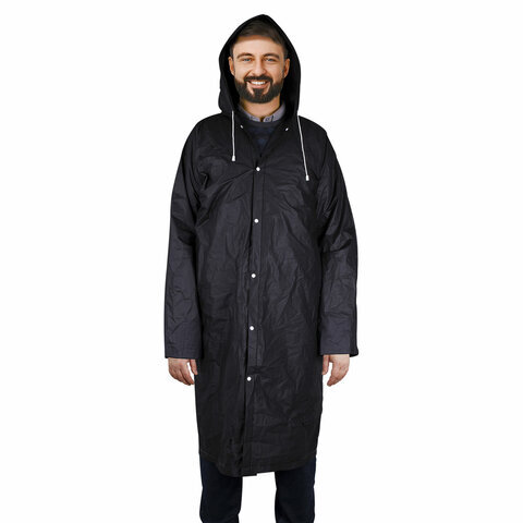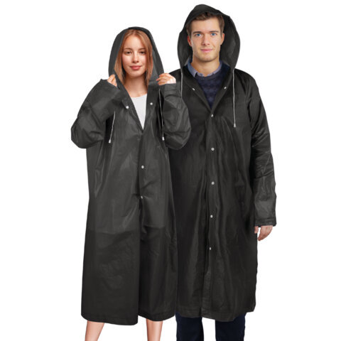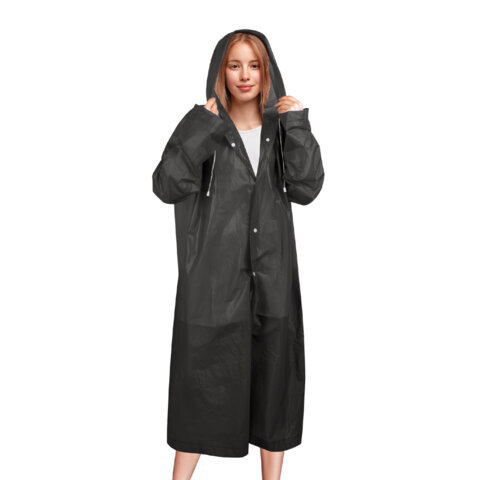 Дождевик плащ на кнопках, EVA, многоразовый прочный, чехол в комплекте, универсальный размер, черный, SHAMAANI (ШАМААНИ), 610932