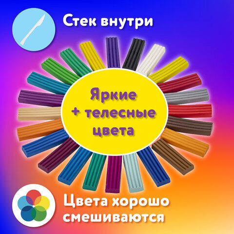 Пластилин классический ЮНЛАНДИЯ "ВЕСЁЛЫЙ ШМЕЛЬ", 24 цвета, 480 грамм, стек, ВЫСШЕЕ КАЧЕСТВО, 106433
