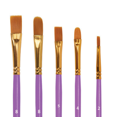 Кисти синтетика BRAUBERG, НАБОР 10 шт., фиолетовые (Круглые; Овальные; Плоские; Лайнеры), 201029