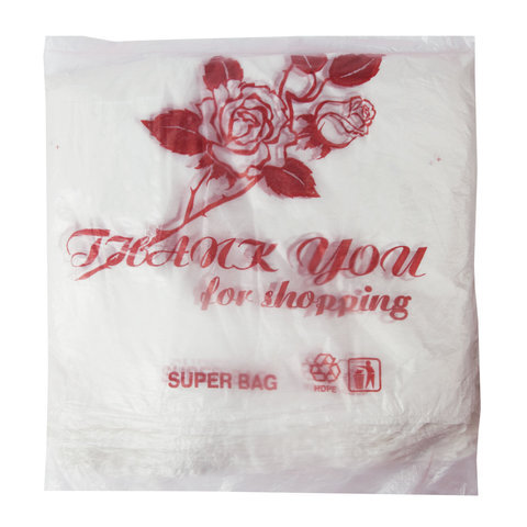 Пакеты "майка", КОМПЛЕКТ 100 шт., 28+14х50 см, ПНД, "Спасибо за покупку "Роза", 15 мкм