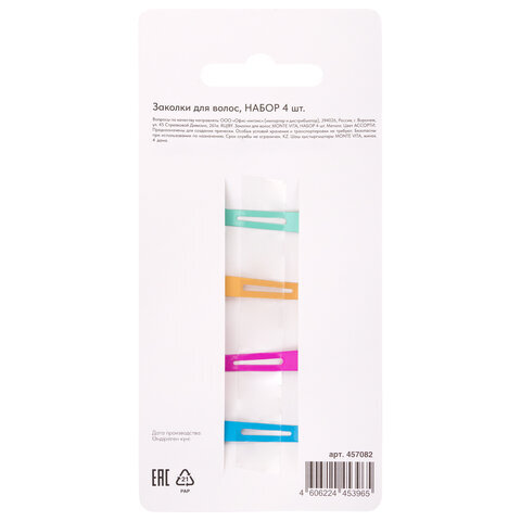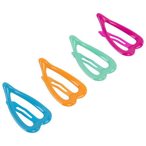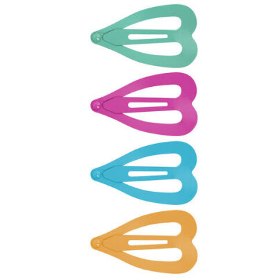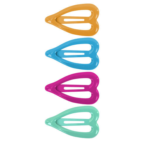 Заколки для волос НАБОР 4 шт., 3,5 см, клик-клак, сердечки, глянцевый, разные цвета, MONTE VITA (МОНТЕ ВИТА), 457082