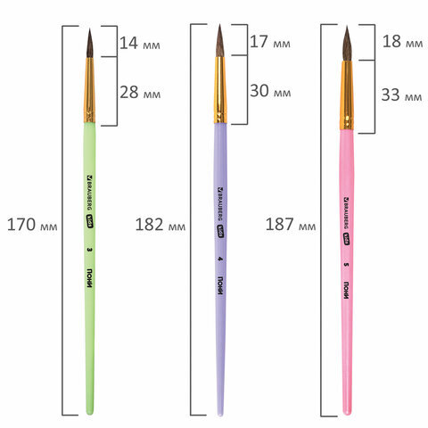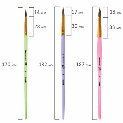 Набор из трех кистей разного размера BRAUBERG KIDS позволяет начинающим художникам решать любые творческие задачи в детском саду, школе и дома.