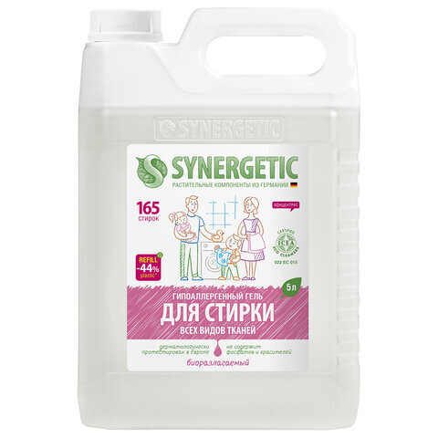 Гель для стирки для всех видов тканей 5 л SYNERGETIC, гипоаллергенный, 109500