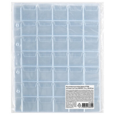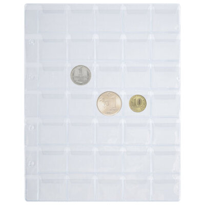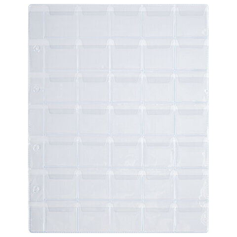 Листы-вкладыши для альбома "OPTIMA" на 35 монет d до 32 мм, КОМПЛЕКТ 10 шт., 200х250 мм, ПВХ, STAFF, 238085