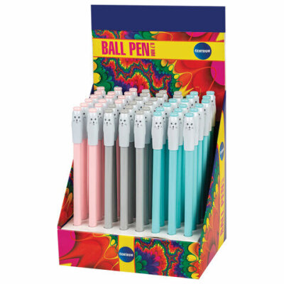 Шариковая ручка CENTRUM "Кот" представлена в тонком круглом цветном корпусе с фигурным дополнением.