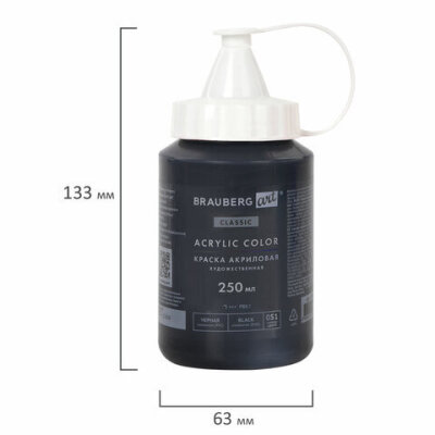 Краска акриловая художественная BRAUBERG ART CLASSIC, флакон 250 мл, ЧЕРНАЯ, 191706