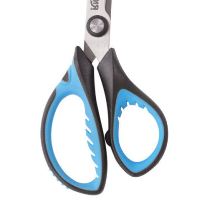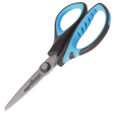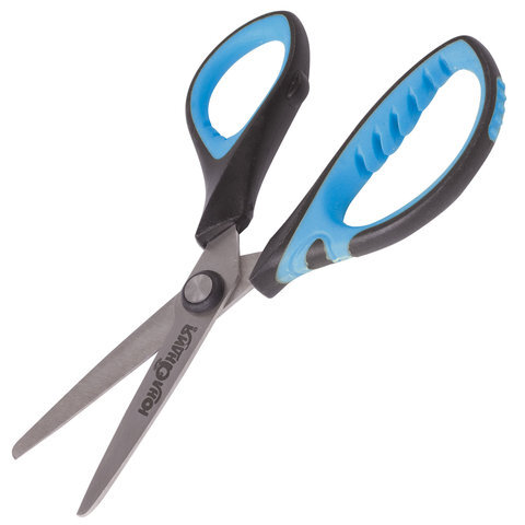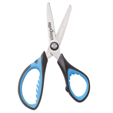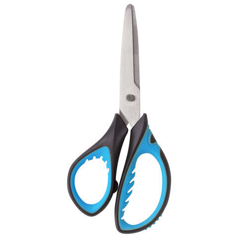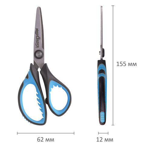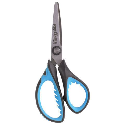 Ножницы ЮНЛАНДИЯ "BASIC", 155 мм, ребристые резиновые вставки, черно-голубые, европодвес, 236991