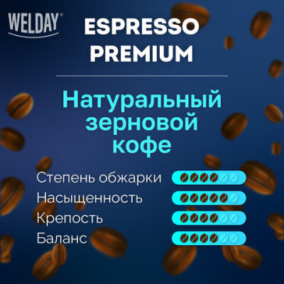 Кофе жареный в зернах WELDAY ESPRESSO Barista – это тщательно подобранный купаж бразильской арабики и индийской робусты. Такой вкус по достоинству оценят как просто любители, так и истинные ценители кофе.