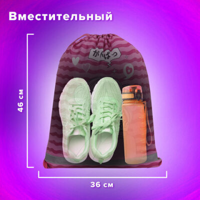 Мешок для обуви BRAUBERG KIDS, светоотражающая полоса, 46х36 см, "Anime style", 272391