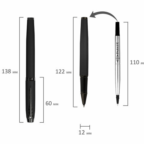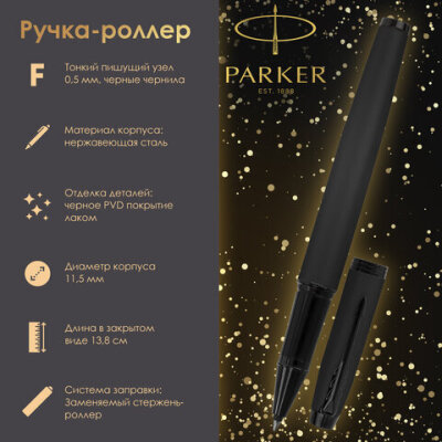 Ручка-роллер PARKER "IM Achromatic Black BT", корпус черный матовый, нержавеющая сталь, черная, 2127743