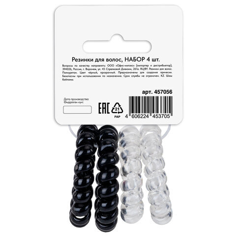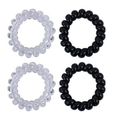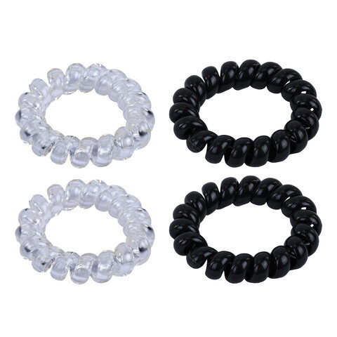 Резинки для волос НАБОР 4 шт., диаметр 4 см, пружинка, чёрный, прозрачный, MONTE VITA (МОНТЕ ВИТА), 457056