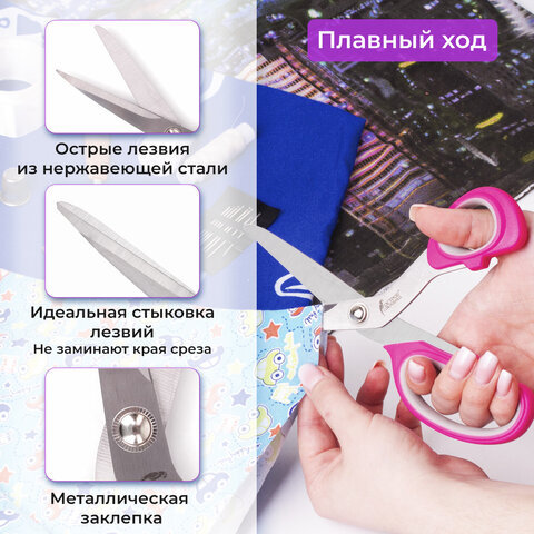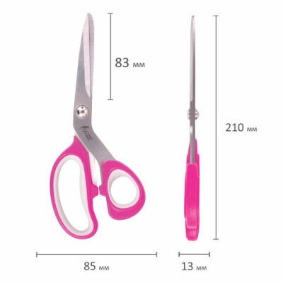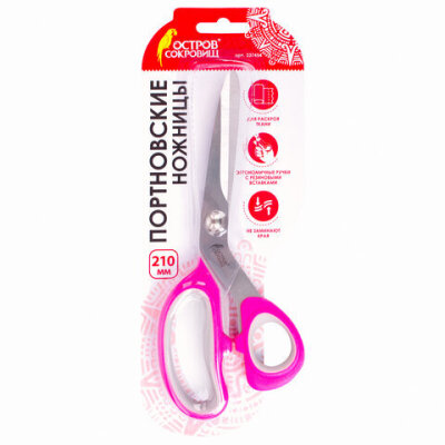 Ножницы портновские ОСТРОВ СОКРОВИЩ ПРЕМИУМ, 210 мм, фуксия с резиновыми серыми вставками, 237454