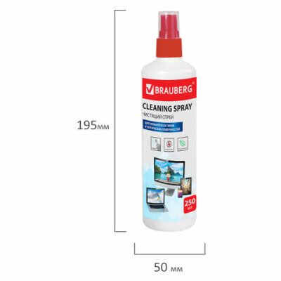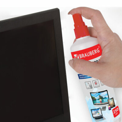 Чистящая жидкость-спрей BRAUBERG обеспечивает идеальное очищение сильно загрязненных LCD(ЖК)-мониторов компьютеров, планшетов, мобильных телефонов, GPS-навигаторов и другой техники