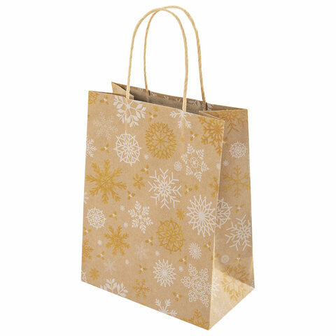 Подарочный новогодний пакет (КОМПЛЕКТ 10 штук) "Снежинки" ЗОЛОТАЯ СКАЗКА – отличное решение для упаковки любого презента, которое позволит легко и со вкусом оформить выбранный подарок.