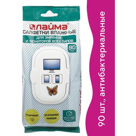 Влажные салфетки LAIMA подходят для мониторов всех типов, очков и объективов, эффективно удаляют пыль и загрязнения. Перед применением слегка проветрить, чтобы салфетка не была слишком влажной. Идеальны для обычной влажной уборки любых поверхностей.