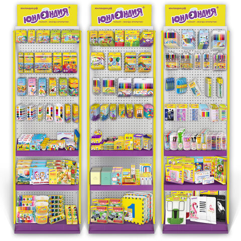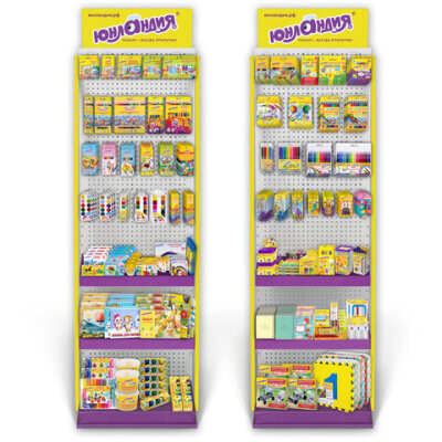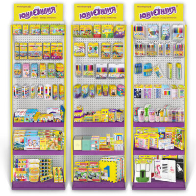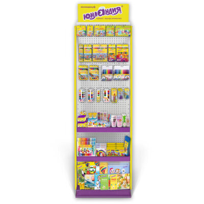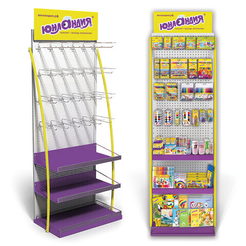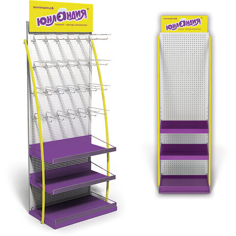 Стильная и вместительная фирменная стойка ЮНЛАНДИЯ позволит выгодно разместить продаваемый ассортимент и повысить объем продаж.