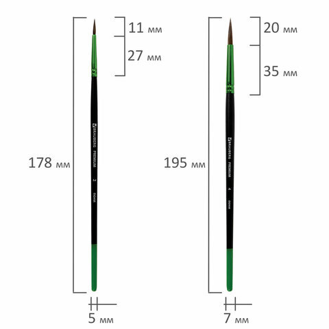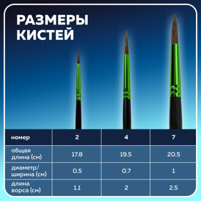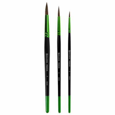Кисти BRAUBERG PREMIUM, набор 3 шт. (из ворса пони круглые № 2, 4, 7), блистер, 201021