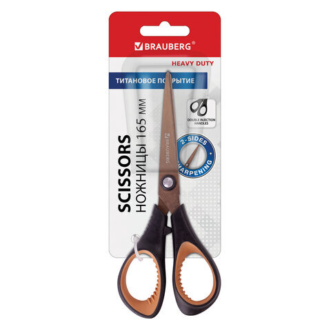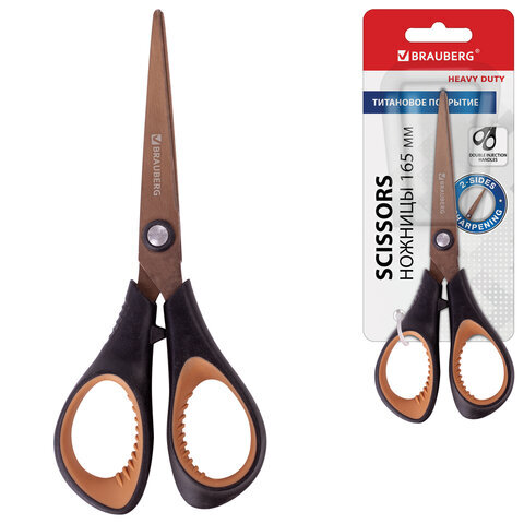 Ножницы BRAUBERG "Heavy Duty", 165 мм, суперпрочные, титановое покрытие, 2-х сторонняя заточка, 236789