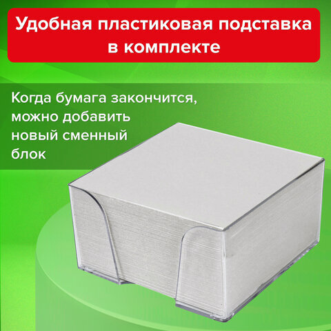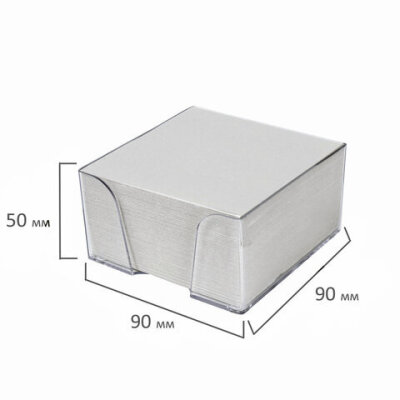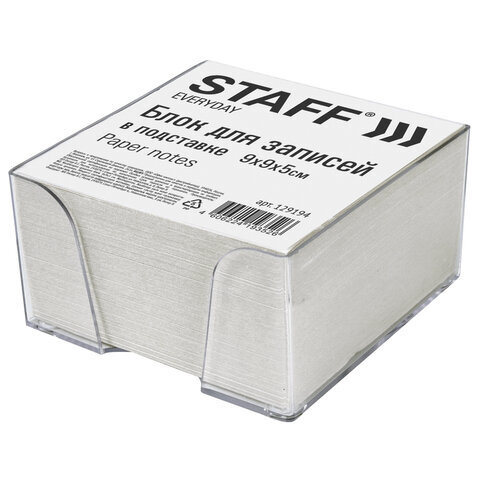 Блок для записей STAFF в подставке прозрачной, куб 9х9х5 см, белый, белизна 70-80%, 129194
