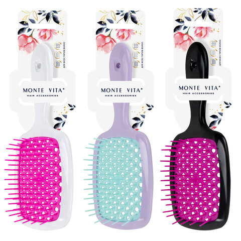Расческа для волос массажная 20х8,5 см, цвета АССОРТИ MONTE VITA (МОНТЕ ВИТА), 457415
