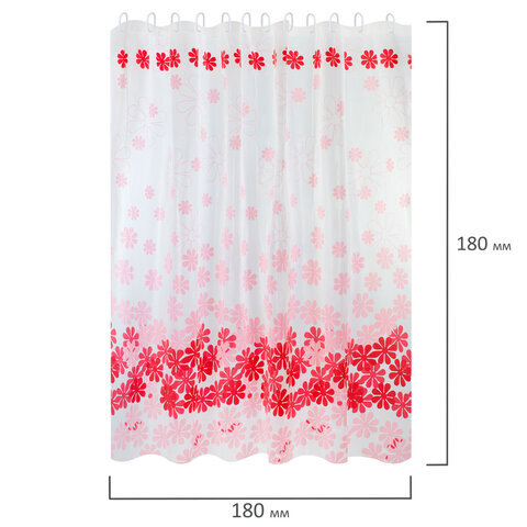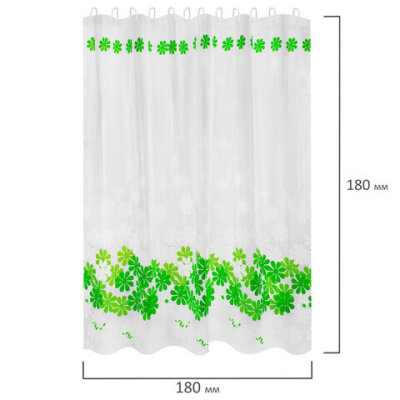 Шторка для ванной PEVA, 180х180 см, кольца в комплекте, 3 дизайна ассорти, ЦВЕТЫ, WBZ (ВБЗ), 700071