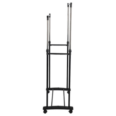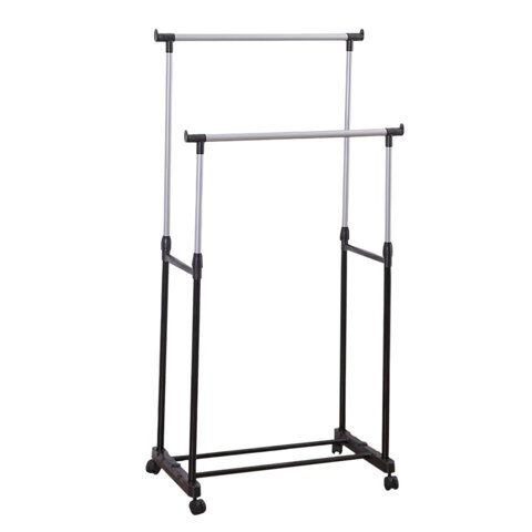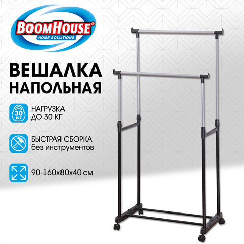 Вешалка для плечиков двухъярусная BOOMHOUSE (БУМХАУС) GR-003 (900-1600x800x400 мм), пластик/металл, черный/хром, 701438