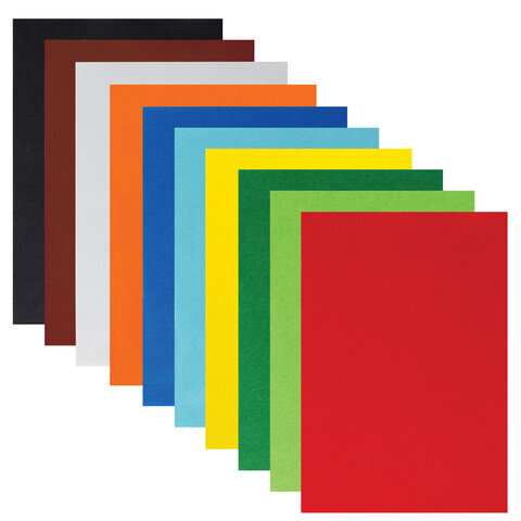 Цветной фетр МЯГКИЙ А4, 1 мм, 10 листов, 10 цветов, плотность 160 г/м2, ЮНЛАНДИЯ, 662048