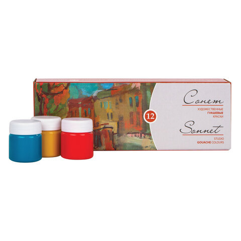 Гуашь художественная "Сонет", 12 цветов по 40 мл, Невская Палитра, 3641064