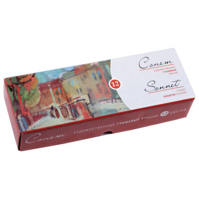 Художественная гуашь "Сонет" Невская Палитра обладает высокой кроющей способностью. Выполнена на основе натурального связующего вещества, обеспечивающего высокую пластичность и устойчивость на любой поверхности (бумага, дерево, картон, стекло).