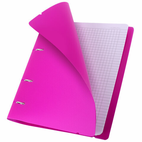 • Тетрадь на кольцах с пластиковой обложкой яркого и насыщенного цвета станет незаменимым помощником в учебе и работе. Импортный кольцевой механизм позволяет легко сменить внутренний блок.