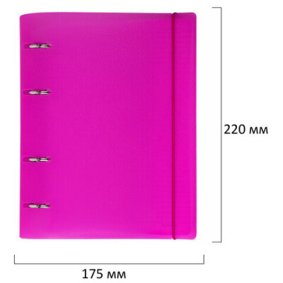 Тетрадь на кольцах А5 175х220 мм, 120 л., пластик, с резинкой, BRAUBERG, Розовый, 404622