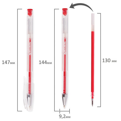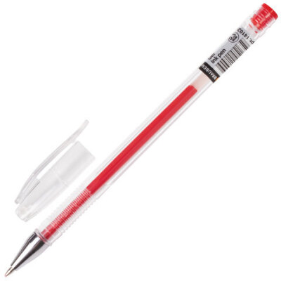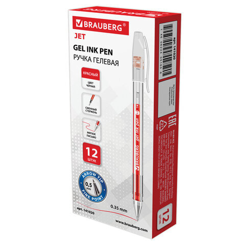 Ручка гелевая BRAUBERG "Jet", КРАСНАЯ, корпус прозрачный, узел 0,5 мм, линия письма 0,35 мм, 141020