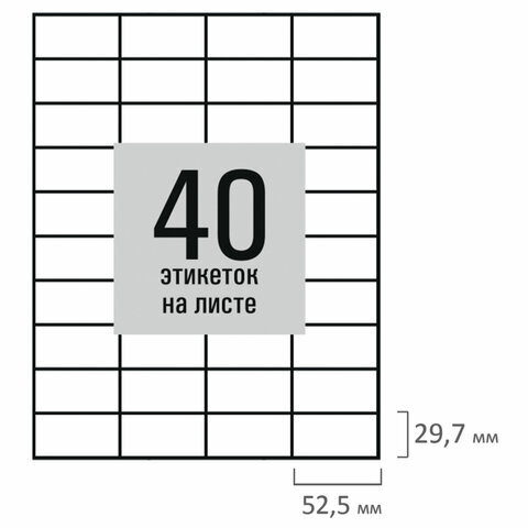 Количество этикеток на листе 40 шт.