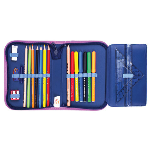 Благодаря откидной планке этот пенал ещё вместительнее, а все необходимые канцелярские принадлежности в нем уже есть. Пенал выполнен из износоустойчивого материала, свободно складывается и легко застегивается.