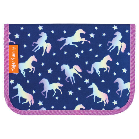 Пенал TIGER FAMILY с наполнением, 1 отделение, откидная планка, 23 предмета, "Rainbow Horse", 20х14х4 см, 228919, TGET-016C1