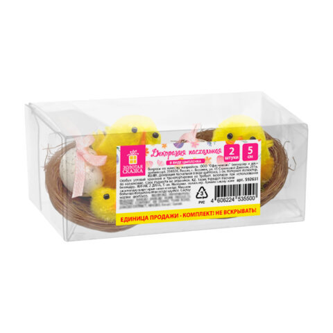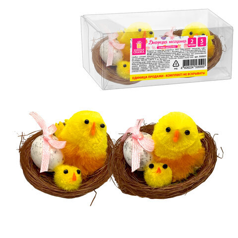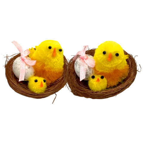 Декорация пасхальная 5 см "Птенцы в гнезде", КОМПЛЕКТ 2 штуки, полиэстер, ЗОЛОТАЯ СКАЗКА, 592631