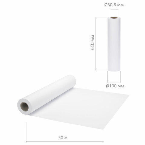Бумага широкоформатная рулон для плоттера, 610 мм х 50 м х втулка 50,8 мм, 80 г/м2, белизна CIE 146%, BRAUBERG, 110455