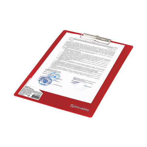 Доска-планшет BRAUBERG "Contract" с прижимом А4 (313х225 мм), пластик, 1,5 мм, КРАСНАЯ, 228681