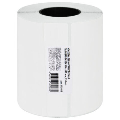 Этикетки термотрансферные, ПОЛИПРОПИЛЕН, 100х150 мм, 250 этикеток в ролике, 115615