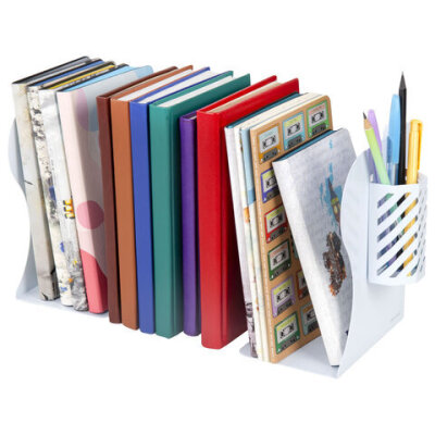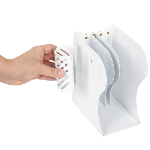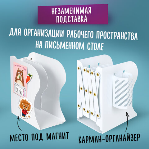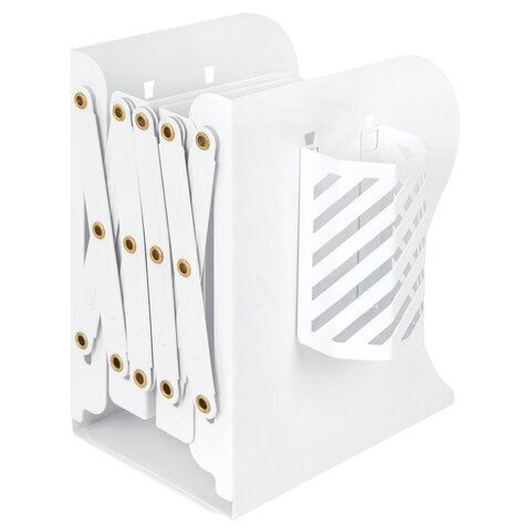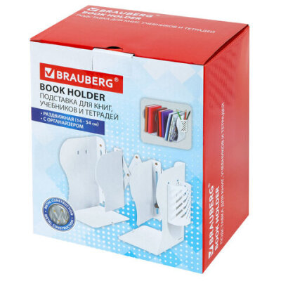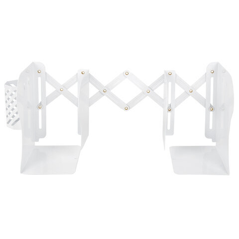 Раздвижная подставка-держатель для книг BRAUBERG в классическом белом исполнении поможет навести порядок и организовать рабочее пространство на письменном столе.