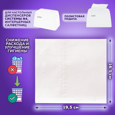 Салфетки LAIMA PREMIUM предназначены для использования в настольных диспенсерах. Универсальный размер позволяет сочетать салфетки с диспенсерами различных производителей. Целлюлозное сырьё обеспечивает максимальную мягкость и комфорт при использовании.