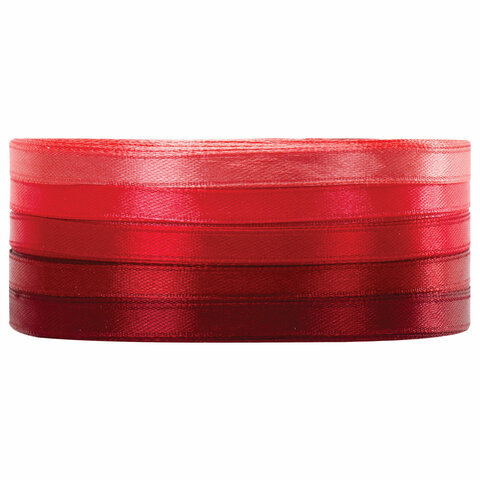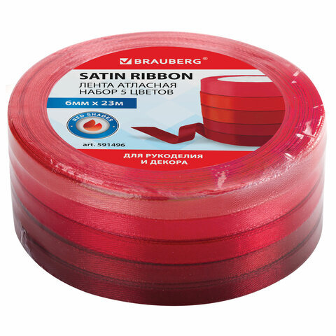 Лента атласная ширина 6 мм, КРАСНЫЙ СПЕКТР набор 5 цветов по 23 м, BRAUBERG, 591496
